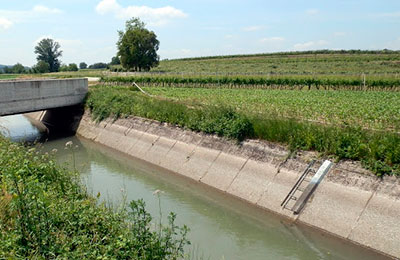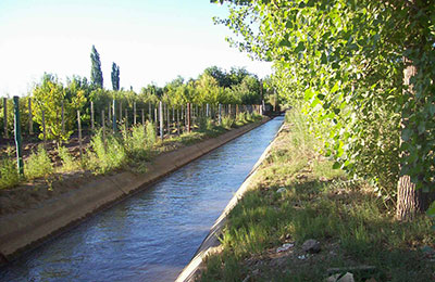 Conducir el agua desde la captación hasta la parcela o huerto se hace con mayor frecuencia mediante canales de riego, los cuales son diseñados cuidadosamente por los ingenieros para evitar la pérdida de agua en el trayecto.